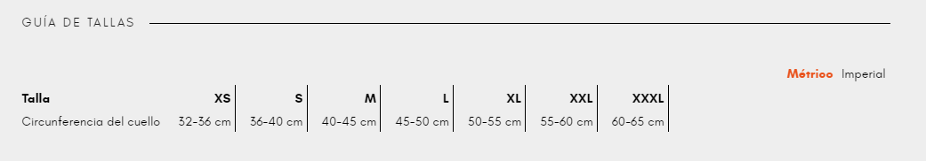 El collar Roam viene en negro, naranja, azul, morado y verde. El collar está disponible en tallas XS-XXXL.