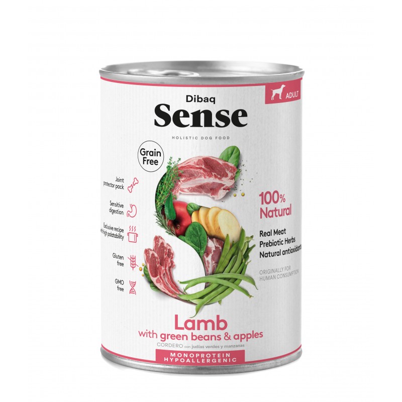 Alimento húmedo 100% natural monoproteico grain free para perros. Elaborado con cordero, judías verdes y manzana. Sin gluten.