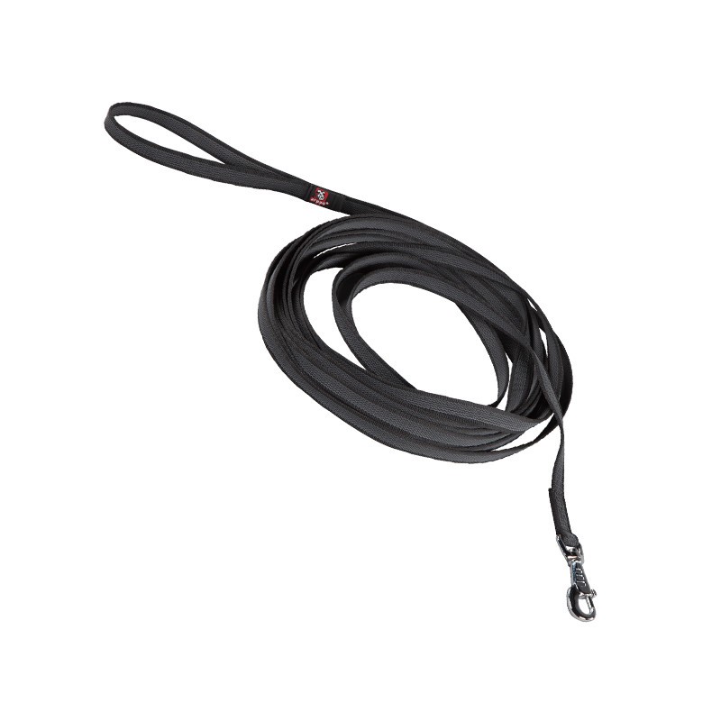 - Enganche el mosquetón al piquete del collar, arnés o petral y verifique que ha cogido el asa de forma segura.