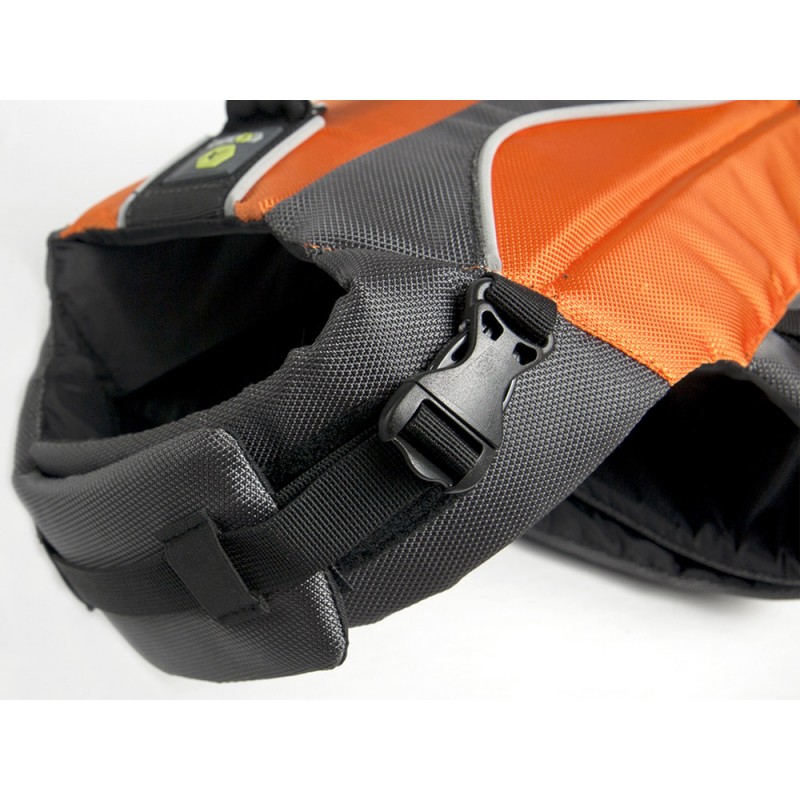 Su forma ergonómica permite al perro moverse libremente tanto dentro como fuera del agua. La resistente asa superior es perfecta para ayuda o sacarlo del agua. En las tallas M y L hay una segunda asa transversal en la parte trasera que aporta más estabilidad al levantar perros grandes. La amplia zona de inferior proporciona seguridad y comodidad al levantar al perro. Diseñado para un ajuste preciso y cómodo en perros con diferentes morfologías. Cierres y cintas extra reforzados, inserciones reflectantes que aumenta la seguridad y visibilidad,….