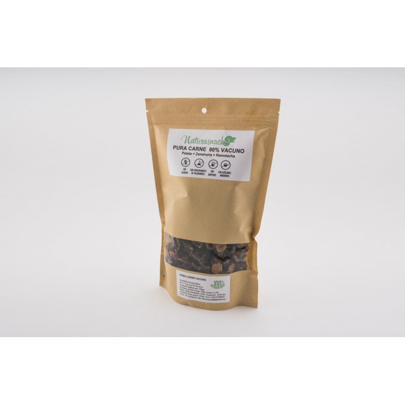 100 % carne magra de vacuno y mezcla de hortalizas, frutas y flores silvestres 100% deshidratadas.