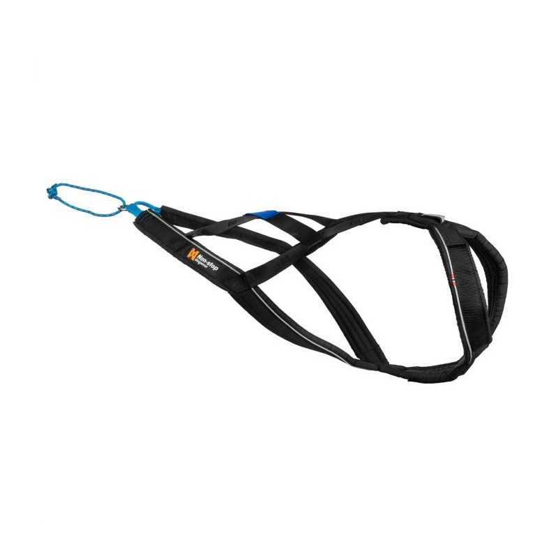 El arnés de tiro está diseñado para permitir que el perro se desempeñe de manera óptima sin restringir el movimiento o la respiración. La parte delantera en forma de Y y el pecho plano utilizan toda la potencia que el perro pone en el arnés. Una sección recta sobre el cuello del perro proporciona total libertad de movimiento en la zona de los hombros. Para los perros que están tirando hacia un lado, este arnés reduce el riesgo de lesión porque la correa trasera se desplaza sobre el punto de sujeción, que nivela el arnés y el perro. Una solapa reflectante en el cuello permite ver cualquier irregularidad en el movimiento del perro, incluso si está oscuro.