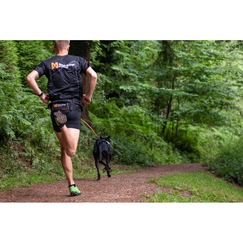 Una correa elástica desarrollada para canicross, bikejoring y skijoring. Toda la longitud es elástica para brindarte a ti y a tu perro una experiencia fluida cuando entrenáis juntos.