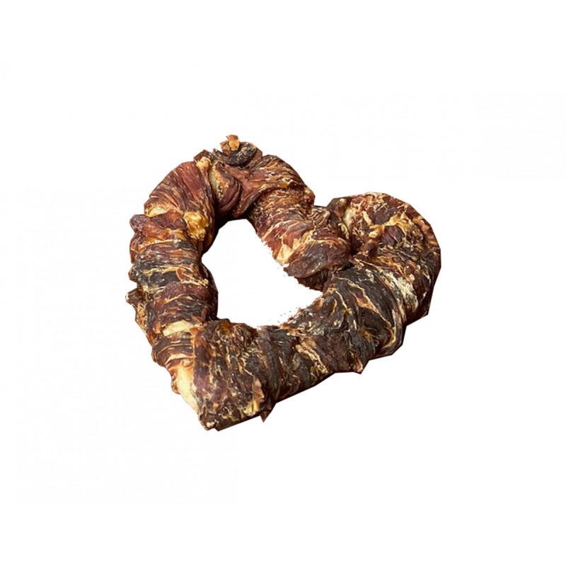 Snack natural de pollo con forma de corazón. Snack duro y resistente.